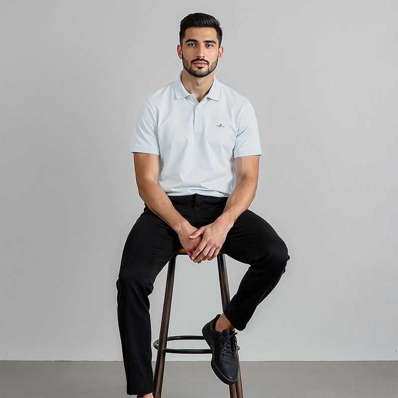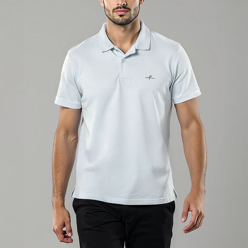 Men's Cotton Double Pique Polo T-Shirt - Dawn Blue