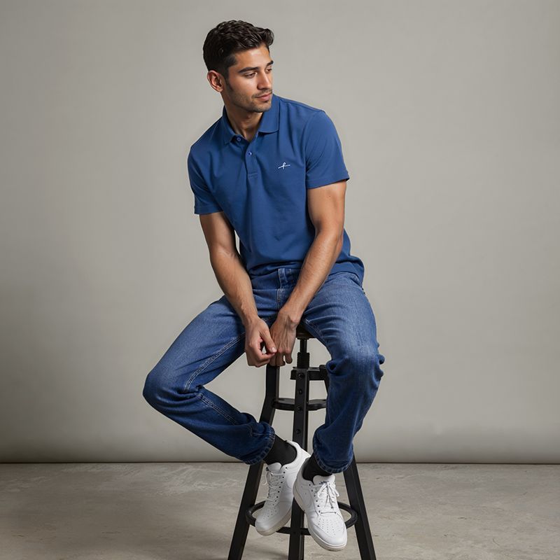 Men's Cotton Double Pique Polo T-Shirt - Navy Blue
