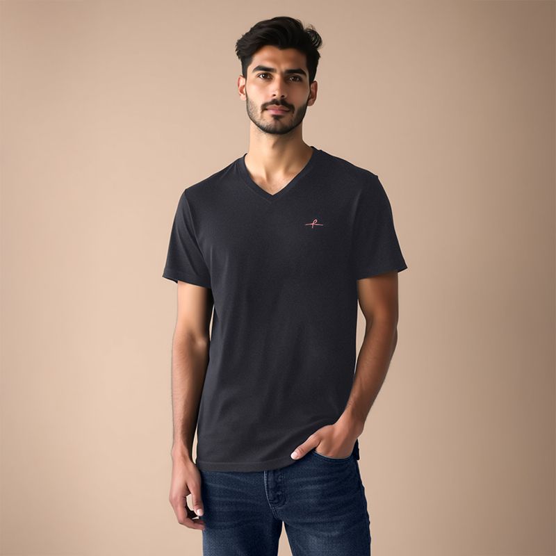 Men's Cotton Jersey V-Neck Tshirt - Black