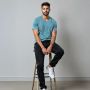 Men's Cotton Jersey V-Neck Tshirt - Teal