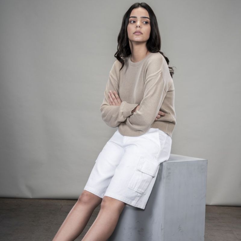 Women's Cotton Drill Cargo Shorts - White