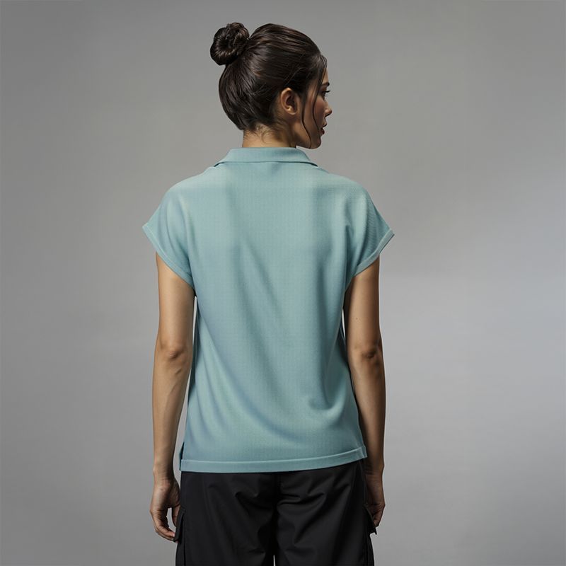 Women's Flat Knit Sleeveless Polo Shirt - Granite Green