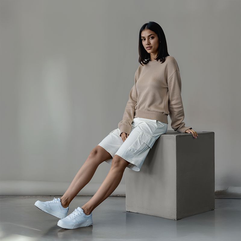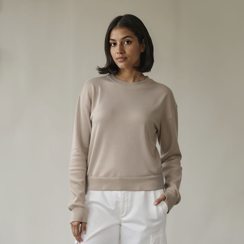 Women's Flatknit Cropped Sweatshirt - Beige
