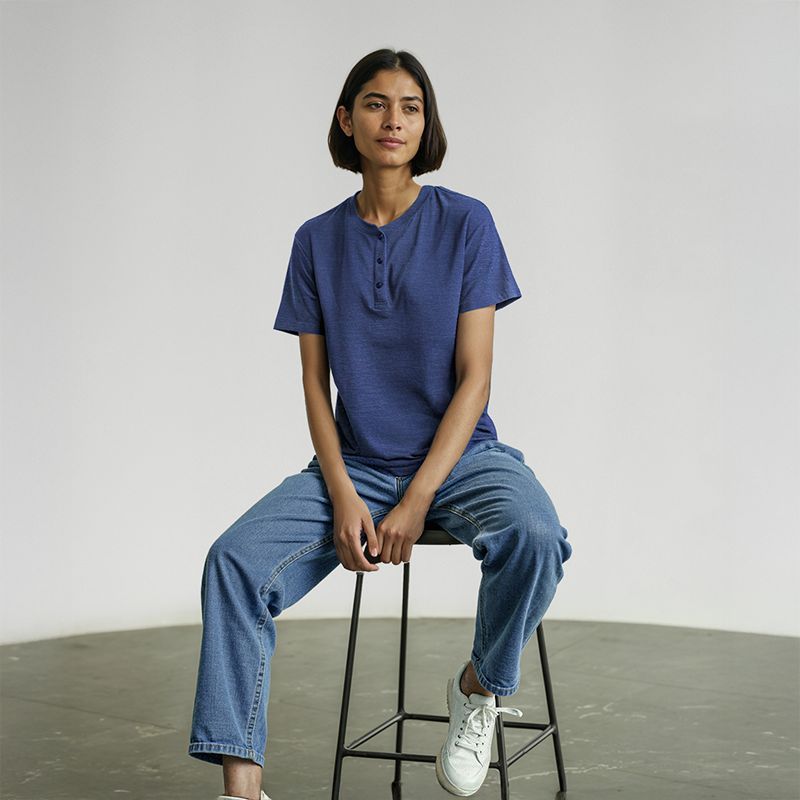 Women's Slub Jersey Henley Tshirt - Dark Blue